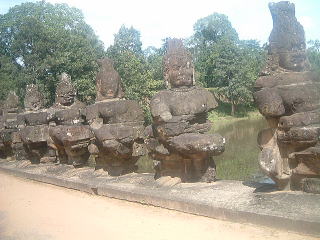 | 【ついにクメール遺跡、最終回】 Sさんの弟様より「ついにクメール遺跡見学の制覇」の連絡が入り ました。 何でも、アンコールワット見たさに、同じビルに入居している日系 企業をまとめて、合同社員旅行を企画してカンボジアのアンコール ワットに行ってきたそうな。。 。 弟様の企画力に感服、それでは弟氏の旅行記?コメントをご紹介 です。 ![]() 【カンボジア旅行情報】 皆様、お早うございます。 カンボジアのホテルは、高級志向の一泊10数万円台から、ゲスト ハウス級まであります。(バンコクより高い)泊まったホテルは、 45jでした。 ![]() 街は、開発ラッシュのように新しいホテルを次々と建設中です。 言語は、クメール語ですがここは、タイ語より英語が通じます。 (最低限コンニチハ位覚えていきましょう。) サワッディー=チョムリアップ・スーオ(こんにちは) サバーイ=サバーイ(元気、気持ちが良いで同じ) 移動方法は、ツアー車・バイクタクシーのどちらかです。 ![]() 人間的には、バンコクより親切と思われ…。客引きもしつこくないし…。 崩壊が激しいようですから、行かれるなら早いほうが良いかと思います。 また、体力に自信の無い方、足腰に不安のある方の参加は御 遠慮下さい。 カンボジアへ行く時は、VISA申請用写真1枚+アンコールパス用 写真1枚を忘れずに!!街は、街灯も少なく暗い感じです。