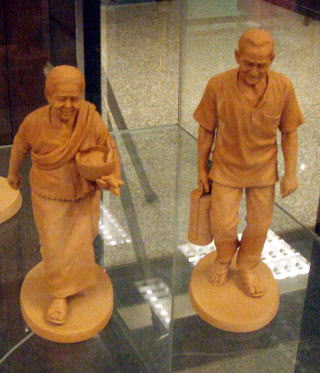 S家ツアー一行はアユタヤを離れ、日本人墓地を社内から見学し、 日本村(Sさんは世界ガッカリ観光地の一つに推薦したい) の入り口だけ社内から観光し、お腹が減ったので、昼食にオックス ・テール・スープと、牛すじのサラダを食べてコラーゲンタップリ、 お肌ツルツル食材に満腹になったので、バンパイ宮殿に向かった。 アユタヤからパンパインまでは車で2−30分の距離です。 その昔、チャオプラヤー川(昔日本ではメコン川と言われていた)の 中の島でバンパイン宮殿が築かれたそうな、現在は対岸にくっつい て元島だったことは伺えませんが、建築は1600年の前半でその後 ラマ5世(ほぼ明治時代)に現在のパンパイン宮殿の姿になったそうな、 建築様式とか、その他はガイドブックで調べて見て下さいませ。 入場料は有料。。全員分をまとめて払ってもらったのでいくらだったか (?_?) 気になる方はガイドブックで(^_^;)m(_ _)m 特にこの中の建物でも有名なのが上の池の中の建物 :プラ・ティナン・アイサワン・チィパアト。 この池の手前にはテラスになっており、写真撮影のための椅子まで 置いてある撮影スポットでございます。 移動はゴルフカートがお勧めです、ここに着いた時には結構疲れて 居たので体に優しく◎でした。 ![]() ![]() 宮殿内にある中国式寺院 ![]() 象さんの群れ。。。 現在はは王様達は使って無くて、一般解放され観光名所となってお りますが、管理は軍の人がしてますので、ゴミ等は捨てないこと、 マナー良く見学下さいませ。(芝生内には入れません) ちなみに歩いて回って2時間程の見学距離ですが、たいていの方は アユタヤ見学の帰りに寄るのですでにクタクタぁ。。 ゴルフカートのレンタルもありますので、疲れた方や足の弱い方には お勧めです。S家一行も1台250バーツで2台借りて楽ちんでした。 ちなみに言葉の話せない人が借りると1時間400バーツになります。 【スーン・シンラパ・チープ】 バンパイン宮殿から車で約10分の距離にスーン・シンラパ・チープが あります。 ちょっとタイ語解説 ・スーン=センター ・シンラパ=芸術 ・チープ=アチープの略で職業 と言うことで芸術を職業とするための専門学校です。 Sさんがここを訪れたのは10年ぐらい前、だいぶ変わっていました、 センター内にはミニ動物園+鳥センターや水族館を併設する観光 名所になっておりました。 作業をしている風景は撮影禁止ですが、 生徒さんが制作した品々は、センターで販売もしております。 絹織物、服飾品、タイダンスのお面、絵画、ガラス細工、粘度細工、 刺繍品等々豊富です。 販売もしているが、建物の2階は特に良くできた作品を展示してお りますので一部を撮影してきたのでご紹介です。 ![]() 60センチ大のガラス細工 みんなが知っているシンハービルのマーク・シントー ![]() 20センチ台の塑像、良く出てき居ます。 ![]() ガラス細工 これも40センチ大 ![]() 粘土で作った花 こちらは等身大の木彫 ![]() ![]() 金属で作った消防車とタンク、大きさは50センチ大。 見学を終わりアユタヤ(^_^)/~(^_^)/~さようなら。 そして晩ご飯はチョンブリ県の裁判所近くのシーフード、 写真を撮ろうと思ったが、みんな飢えていてあっという間に お皿だけになりました。 普段安いと思っているシーフードも12名で食べると(^_^;)。。。 持ってて良かった(*^_^*)クレジットカードでした。 (娘はおつりを自分の懐に入れるつもりでいた様でガード支払 いにガッカリしておりました。) レストランには、流しの象さんが、、長男君がサトウキビ20バ ーツ(約70円)プレゼント。ぞうさんは妊娠中とのことでした。 バンチューンさんとお友達のサーイ。。。。さんも象さんのサト ウキビを買って記念写真(*^_^*)で大満足(^-^)そうでした。 ![]() チョンブリ県の夕日と、妊婦のぞうさん。 本日はS家世界遺産アユタヤツアーにご参加いただきまして誠に ありがとうございます。S家に着いたら夜8時を回っていたので、 13時間のツアーでした。 社内にお忘れの無いか、もう一度ご確認の上ご降車願います。。。 本日はご利用ありがとうございました。m(_ _)m そしてホームステイに来てくれたバンチューンさん3週間お疲れ様 でした。 S家のホームステイ編 完(^_^)v 【ちょっとコーヒーブレイク】 Sさんの会社のあるアマタナコン工業団地で、清掃活動に従事する、 もうすぐ出所する囚人さん達を見かけましたので、ご紹介です。 チョンブリ県には刑務所があり、比較的刑の軽い人で且つ出所期 限の近い人が社会奉仕のためにかり出される様です。 写真にはありませんが、監視員は椅子に座り木陰で。。。でした。 ![]() 炎天下の中おそろいのユニフォームでご奉仕ご苦労様です。 ちょっとタイ語教室 ・囚人=ナック・トーッ ・社会奉仕=ボリガーン・サンコム ・刑務所=クック ・拘置所=ロン・パック いらっしゃいませタイランド。 |