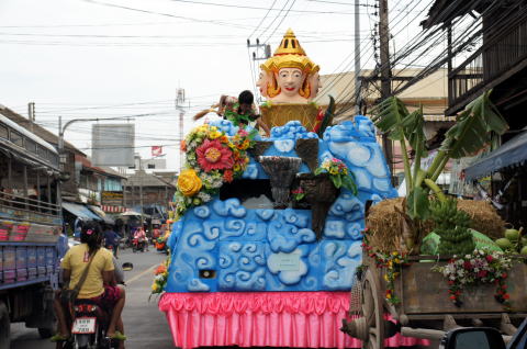 | 【ちょっとコーヒーブレイク】 タイはタラート(市場)が一般家庭の食材供給源の一つ です、大型スーパーの進出した今でもなお新鮮な食材 を求める方々は朝市へ行くのが普通です。 写真の様な市場は何処の市区町村の中心地にござい ます、支払いはもちろん現金決済のみ。 今回はSさんの住むシラチャー市場の朝6時半頃のタイ の食文化風景をご紹介です。 なお駐車スペースが少 ないので、家族みんなで行くと駐車場係、物持ち係と 分担で出来(*^_^*)ますので効率的です。 (ちなみにSさんは家から10分弱のこの市場に最後に 来たのは1年以上前だと言うことを思い(-_-;)出しました。 朝5時前からオープンし9時頃には閉まるのが一般的かも。 ![]() 時計塔のあるロータリーは街の中心で一等地、銀色の建物 が市場で、セミオープンタイプが一般的です。 道路を挟んで反対側はシラチャーの公民館。 ![]() ![]() 肉、野菜、魚、果物、衣料品まで売られています。 ![]() ![]() 上はナマズの首(動いていました)、ウズラ、カエルも。亀、 スッポンもありました。 ちなみにこのタライ山盛りのナマズ首は30バーツ(約90円) で売ってました。 ![]() ![]() 朝の托鉢のお坊さんも(*^_^*) ![]() ![]() ![]() タイの食文化の原点:市場ご紹介でございました。 ちょっとタイ語教室 ・肉 : ヌア ・野菜 : パック ・魚 : プラー ・果物 : ポンラマーイ ・衣料品 : スーア・パー ・亀 : タウ ・スッポン : タパープ ・カエル : ゴップ ・市場 : タラート ・朝市 : タラート・チャーオ 【ちょっとコーヒーブレイク】 本来は、手に水をかけて祝福する事から始まったハズが、 今では水鉄砲やバケツで水をぶっかけ合うお祭りに変化 したタイ正月=ソンクラーンは、時代の流れかもしてません。 しかしお寺に行けば仏像に水をかけて祝福したり、結婚 式で新郎新婦の手に水をかけて祝福する文化も健在の アメージングタイランドでございます。 Sさんの住むタイ東南に位置するチョンブリ県では、バン セーンとパッタヤーの水掛が有名ですが、今回は バンセーン地区の水掛祭り用の山車からからご紹介です。 ![]() 王家の写真は必須、ジープは軍の物では無く個人用。 ![]() ![]() ![]() ![]() 珍しいタイプの自転車乗りも ![]() 親子でノーヘルがタイ風。。。 タイの朝の風景でした。 いらっしゃいませタイランド |