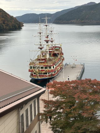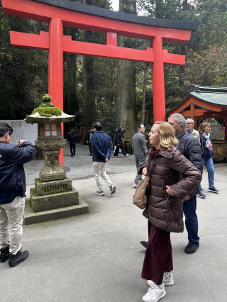 芦ノ湖の中に立つ鳥居、撮影順番一時間待ちなので、