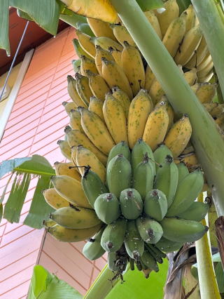 家内の箱庭果樹園からバナナの収穫です。会社のスタッフ達にも