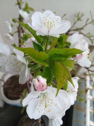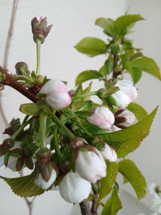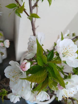 叔母上様から、アメリカンチェリーを食べて、種をベランダのタンブラ―に、